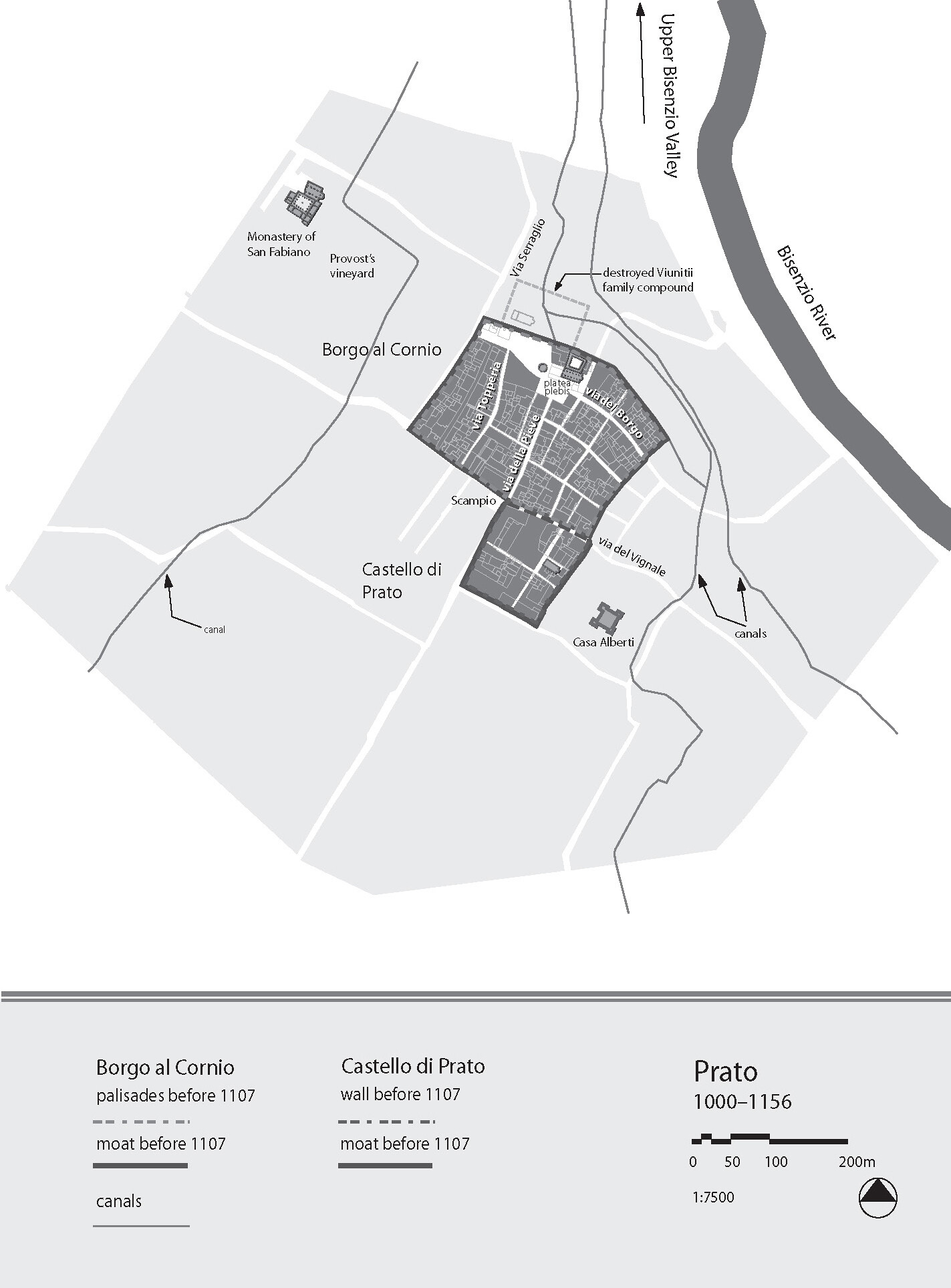 Borgo al Cornio and Castello di Prato, 1107–1157. Image: McLean, 2008.