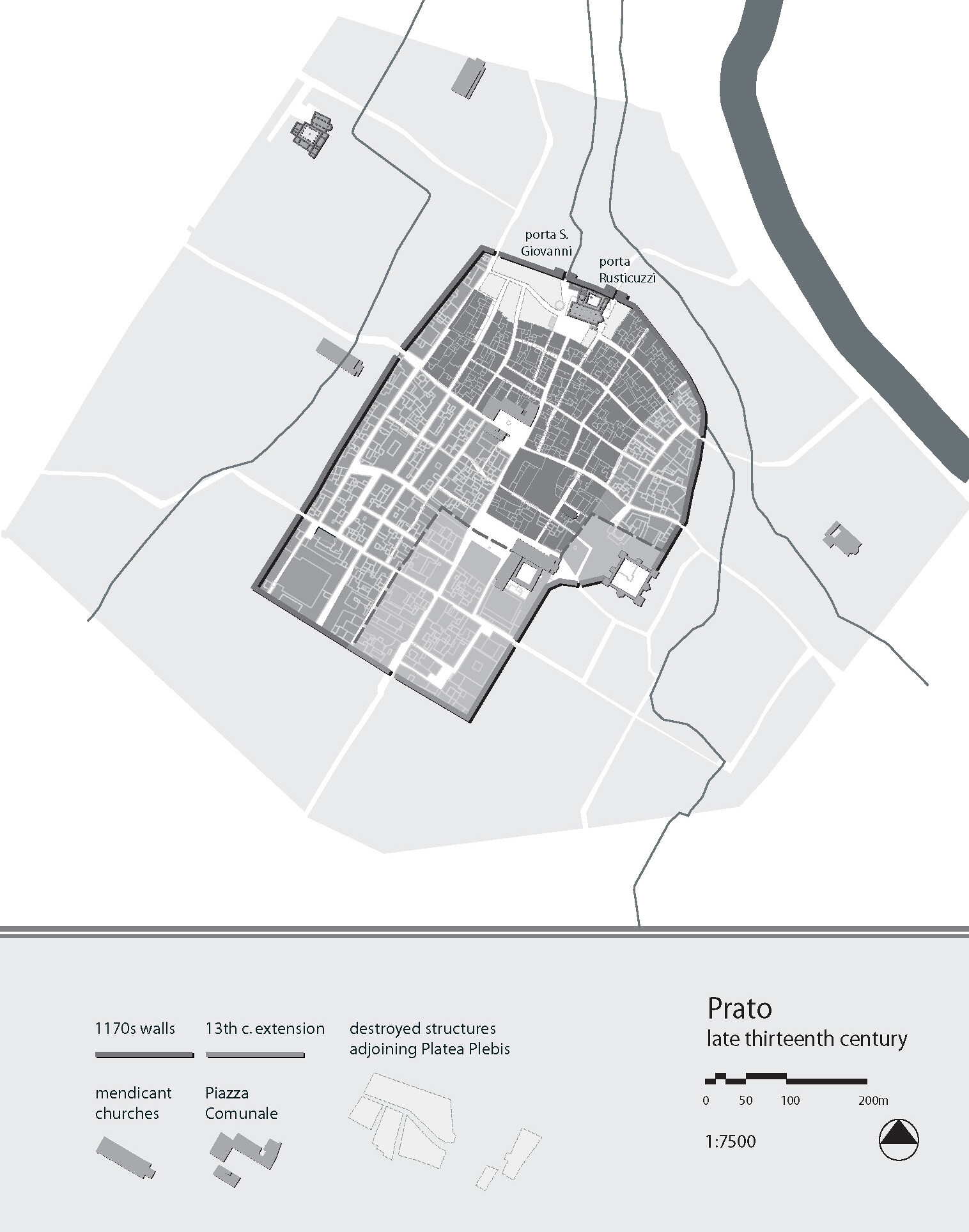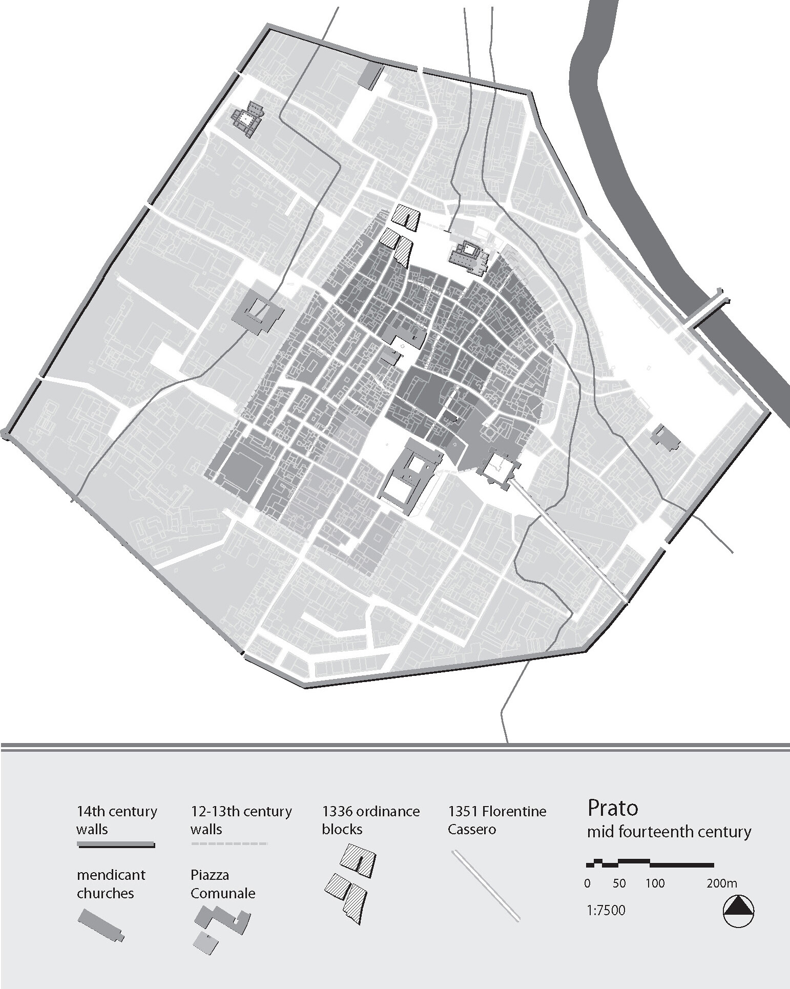 Plan of Prato, mid-fourteenth century. Image: McLean, 2008.