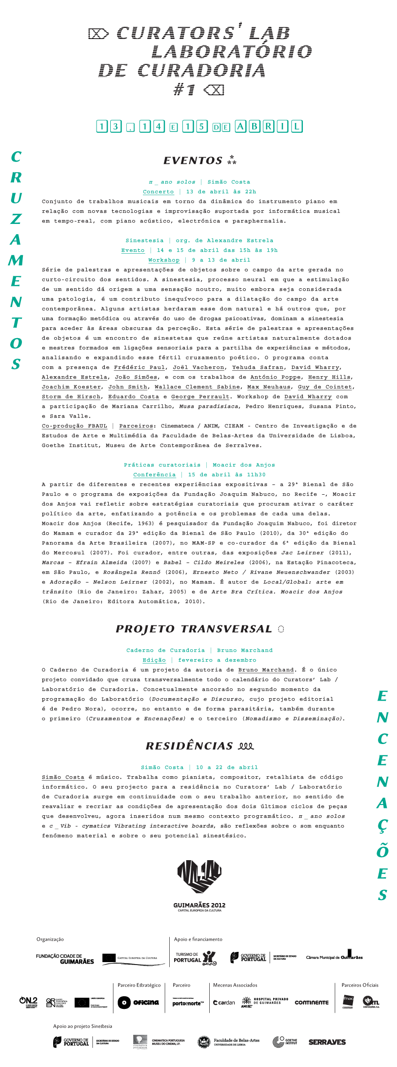Programação 13 | 14 | 15 de Abril do Laboratório de Curadoria / Alexandre Estrela, Moacir dos Anjos, Bruno Marchand, Simão Costa..