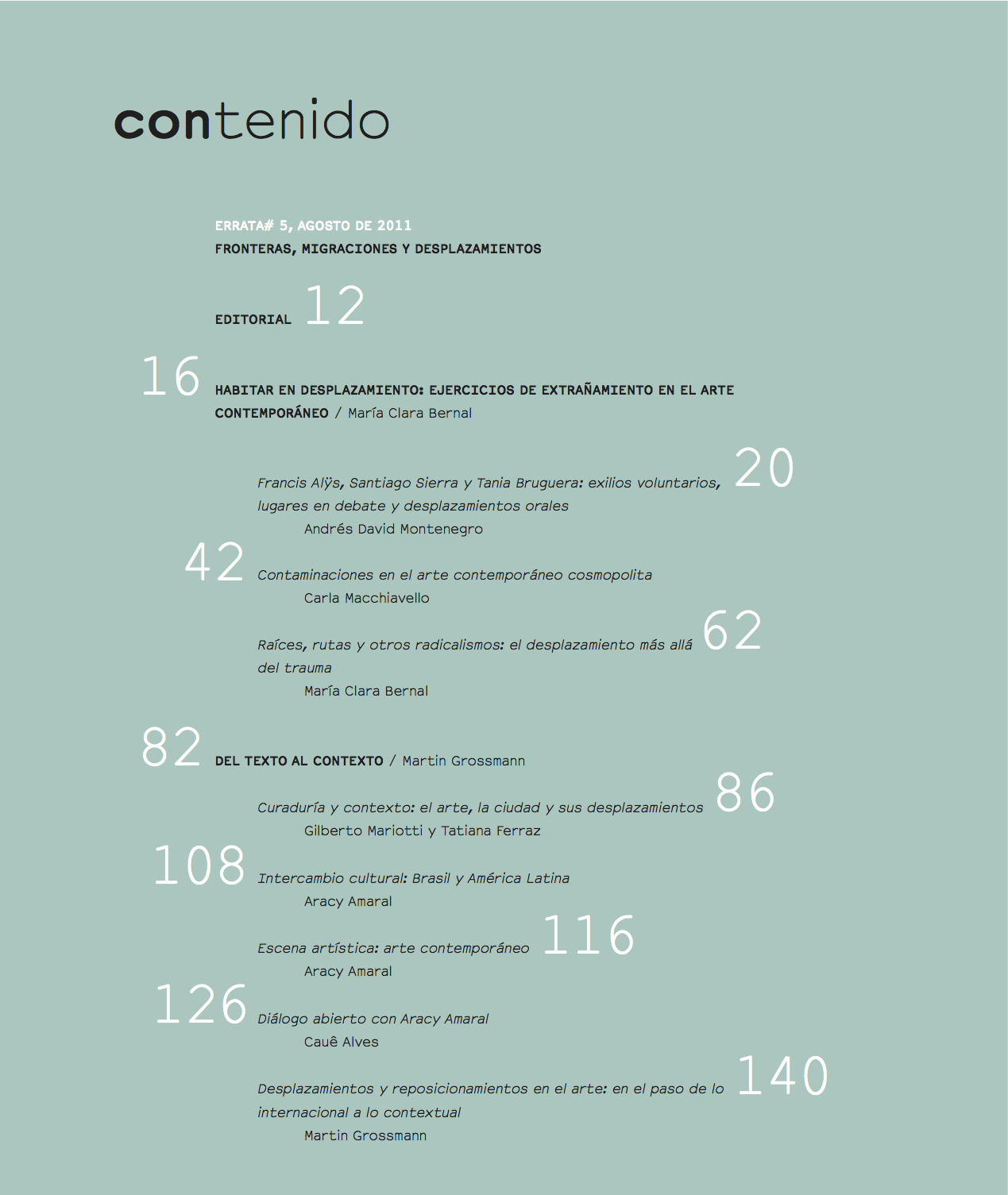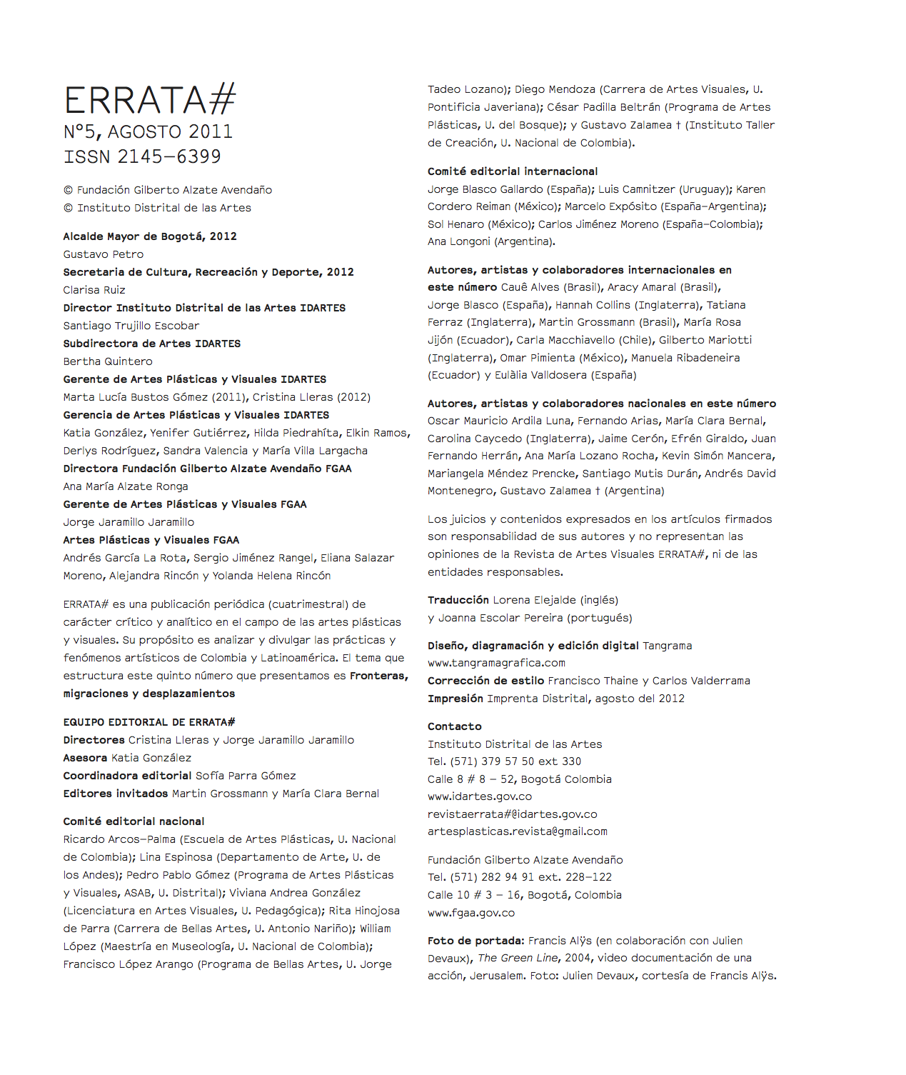 A Revista Errata foi criada em 2009, em Bogotá, concebida como um espaço de análise e difusão das artes plásticas e visuais. Além de contar com um comitê formado por pesquisadores de arte e uma grande rede de colaboradores colombianos e internacionais, a Errata convida a cada edição dois especialistas (um da própria Colômbia e outro estrangeiro) para pensar a publicação. A Errata é quadrimestral e distribuída para venda e gratuitamente dentro dos principais centros de arte colombianos e bibliotecas nacionais e internacionais. As edições 0 a 4 estão disponíveis pelo site da revista.