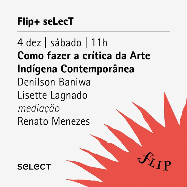 SAVE THE DATE! Hoje começa a FLIP 2021 - Nhe'éry Jerá. Sábado que vem FLIP + seLecT apresentam um debate fundamental com o artista Denilson Baniwa e a crítica de arte Lisette Lagnado.