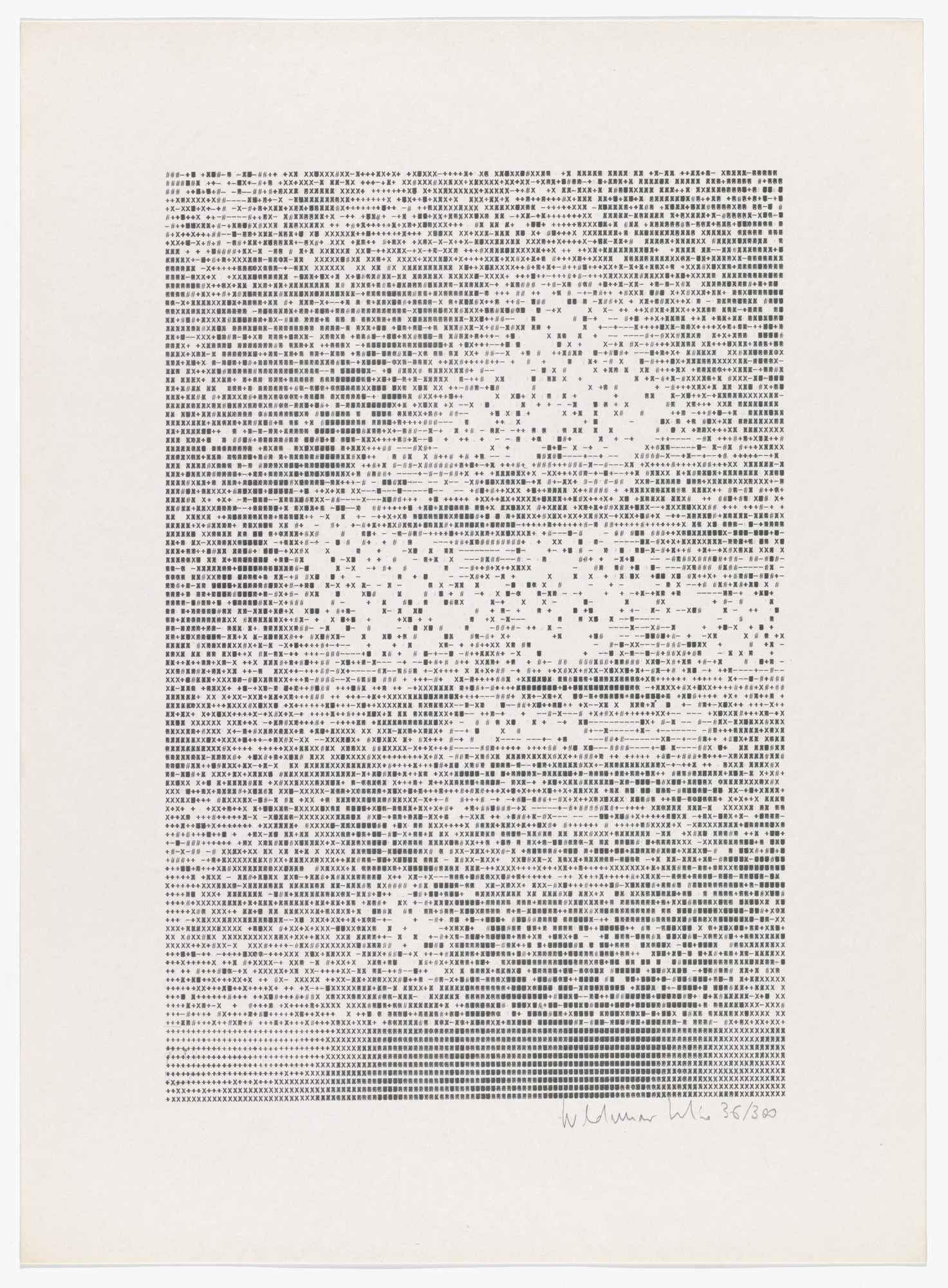 Imagens: A mulher que não é B.B. 1973. Offset, 46x30cm. Acervo Banco Itaú. Trabalho de Waldemar Cordeiro utilizando apenas sistema alpha-numérico, a partir do projeto Derivadas de uma imagem realizado com Giorgio Moscati.